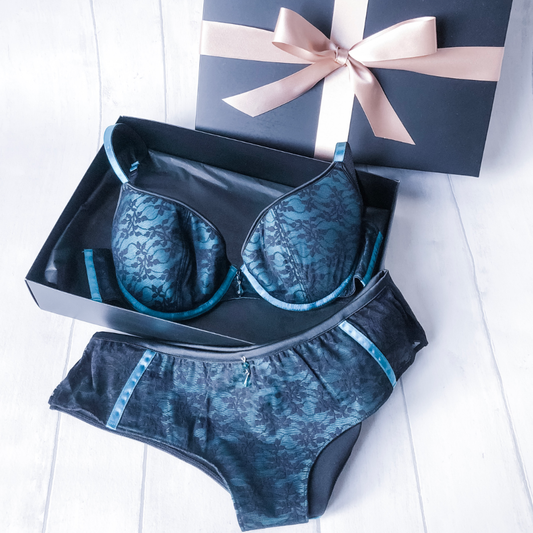 Midnight Garden Lingerie Gift Set - 1 Bra and 2 Shorts in a Gift Box (AA to D cup)